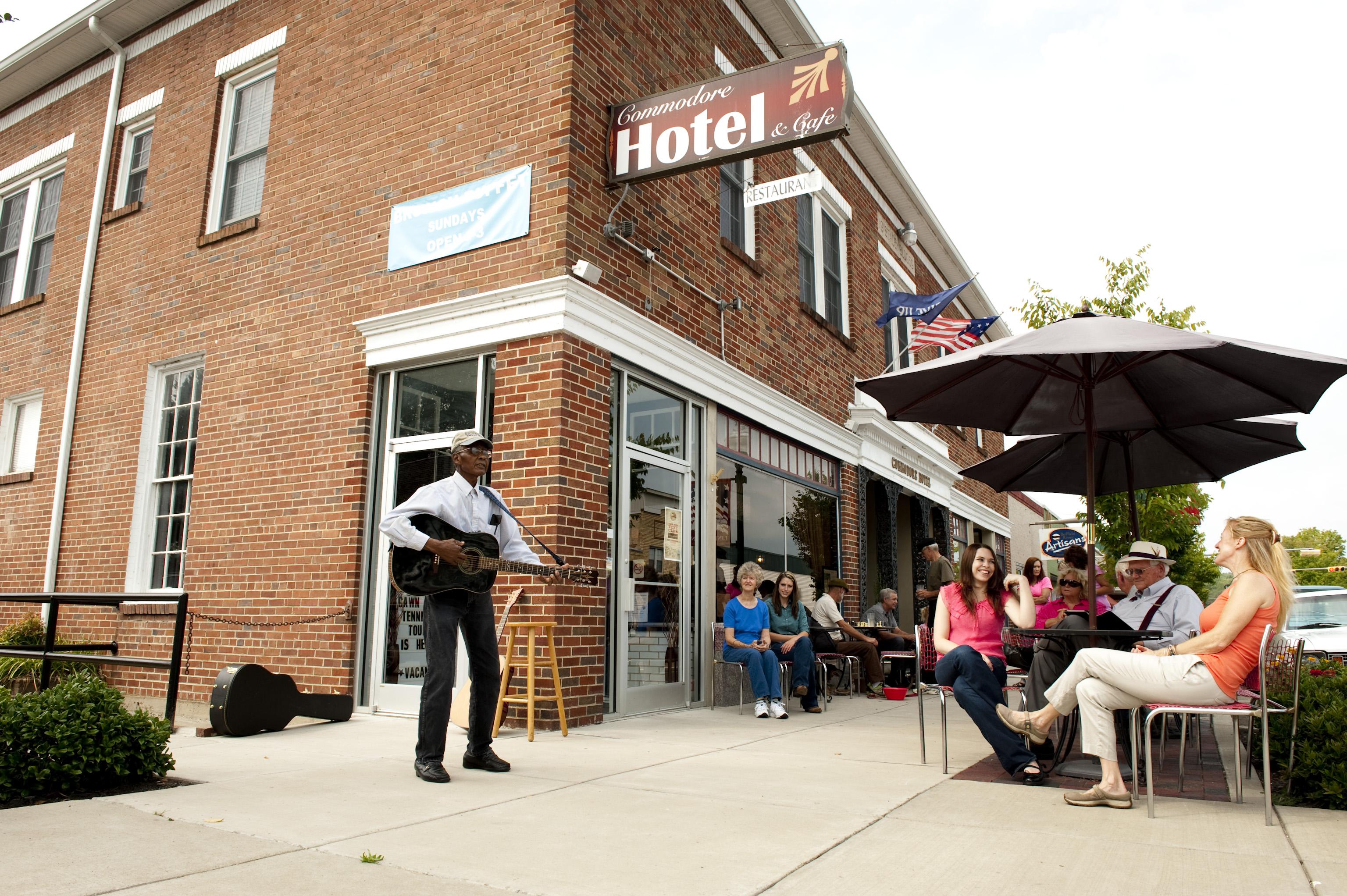 Rescued from ruin in 2007, this historic 1939 hotel is an oasis of Relaxation and Rejuvenation between Nashville and Memphis. Highlighted by the Travel Channel, PBS, and others, the Commodore was named one of “Six Great Places to Stay in Tennessee “. Relax, sit a spell, and let your cares be swept away by our accommodating crew, friendly locals, comfy rooms and satisfying drinks and vittles.
