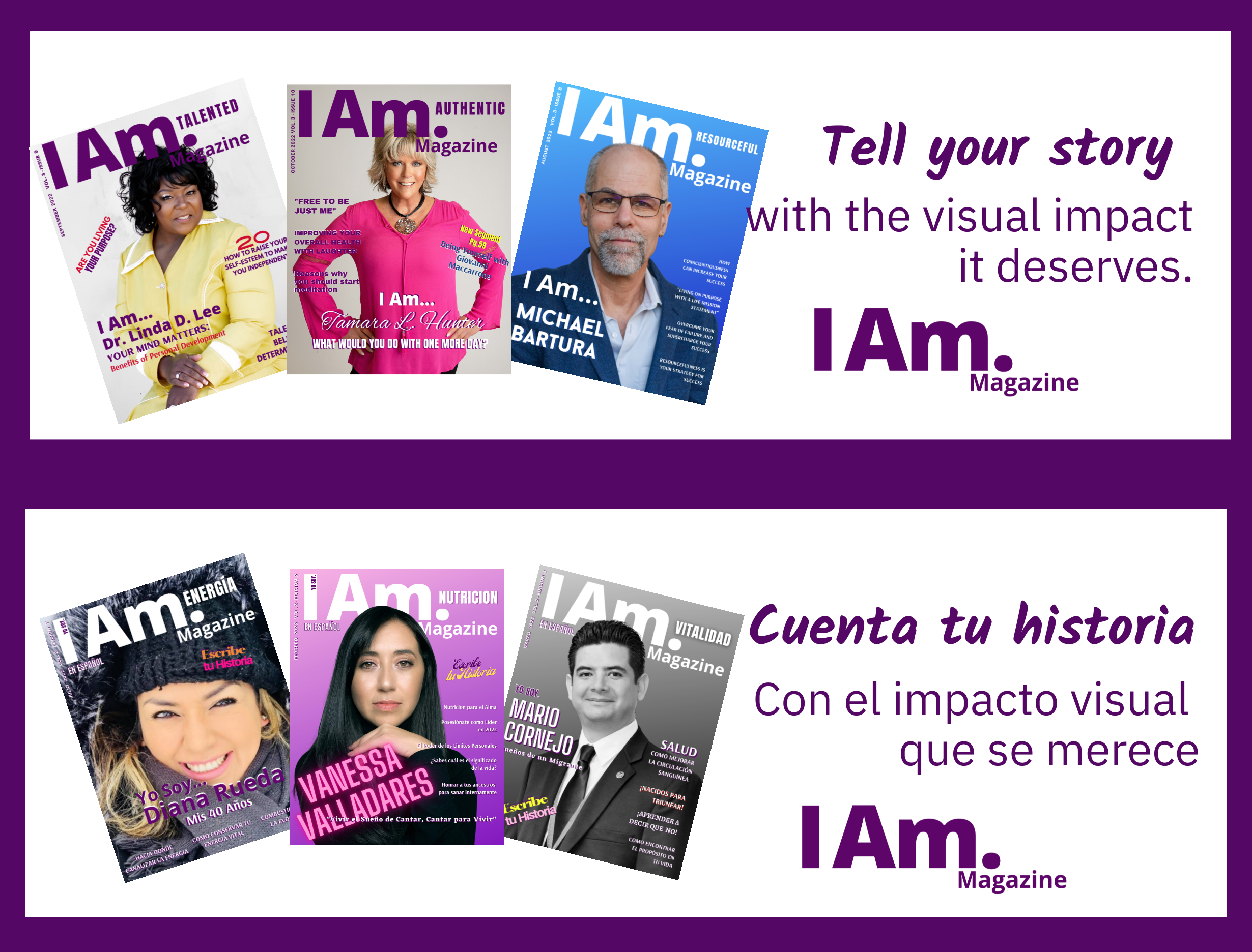 I Am. Magazine International is a collection of digital magazines with inspiration, motivation, life coaches, entrepreneurs, feature authors, personal development, health, love thyself, articles to grow, reach your potential, and much more. Becoming the best version of yourself! With a positive mindset. We also offer advertising worldwide, branding yourself, and reach an international audience. Grow your business to the next level! Join us, Share Your Story!